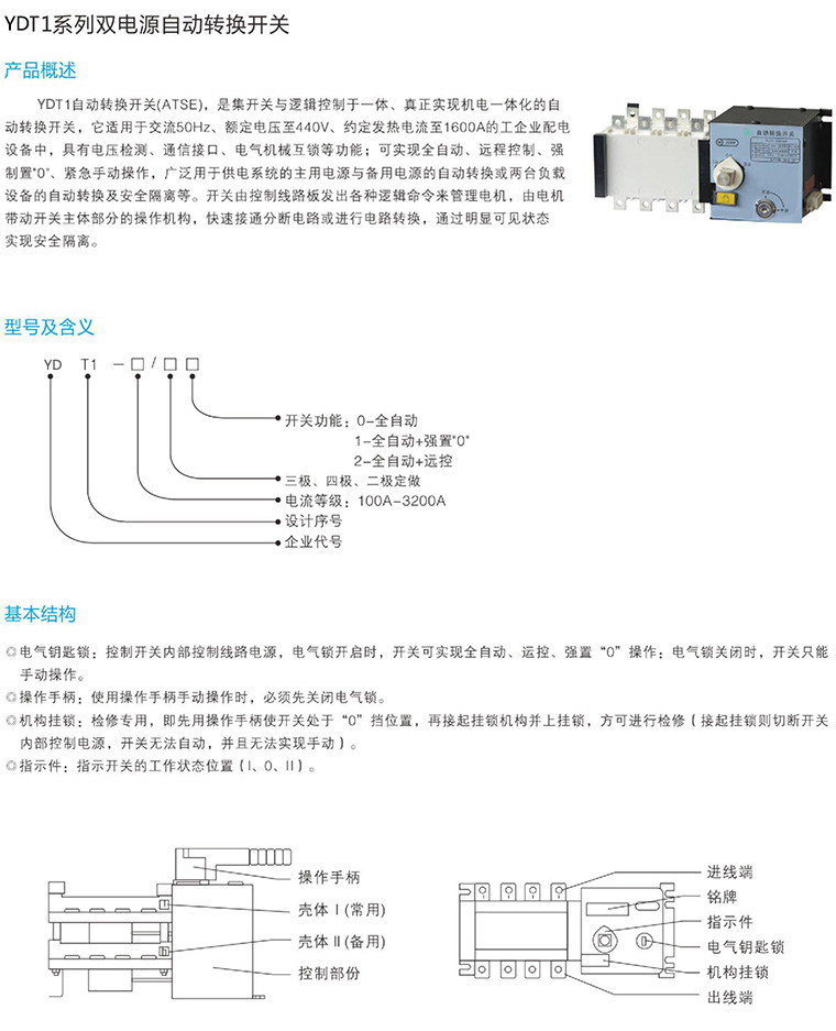 YDT1系列雙電源自動轉(zhuǎn)換開關(guān)