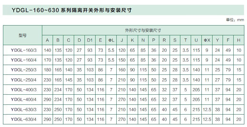 YDGL-63~3150 系列隔離開關