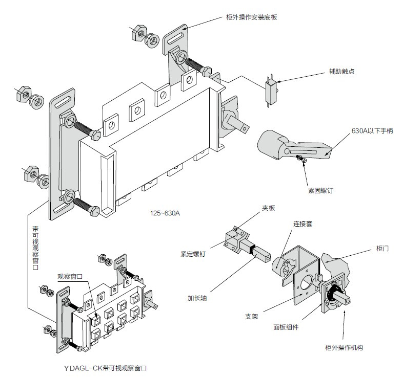 可根據(jù)需要提供有觀察窗口的產(chǎn)品( 產(chǎn)品型號標注為YDGL-CK),直接觀察觸頭的通斷狀態(tài)。