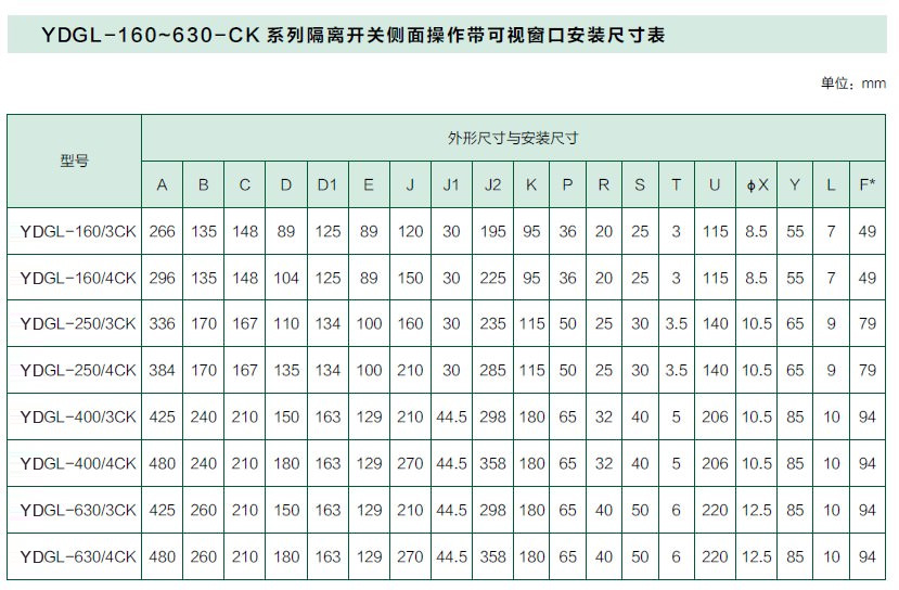 YDGL-C、YDGL-CK 系列側(cè)面操作隔離開關(guān)