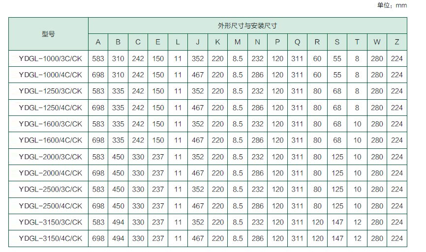 電氣性能與機械性能和YDGL-160~3150 系列電氣性能與機械性能對應相同。
