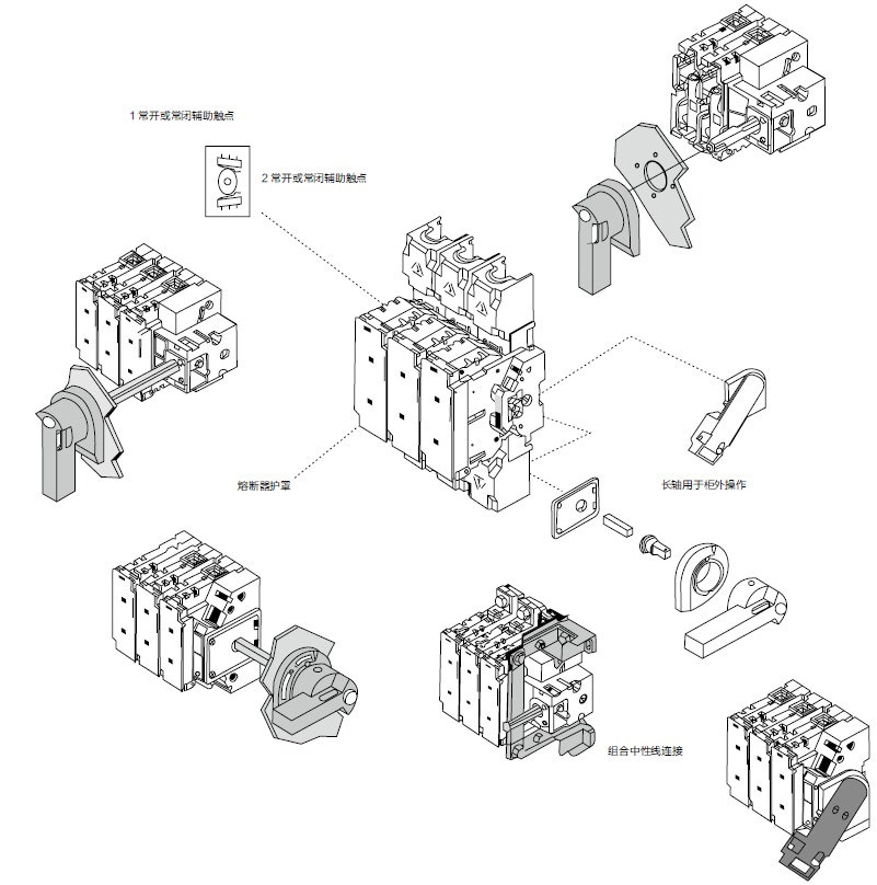 操作機構(gòu)是彈簧蓄能,瞬時釋放的加速機構(gòu),瞬時接通與斷開多斷點觸頭結(jié)構(gòu)。與操作手柄的速度無關(guān),極大地提高了各項電氣性能與機械性能。