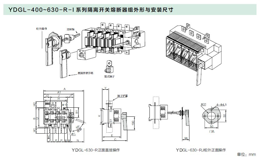 ydGL-R 系列隔離開關(guān)熔斷器組( 以下簡稱開關(guān)) 是一種多極,手動操作開關(guān),采用玻璃纖維增強